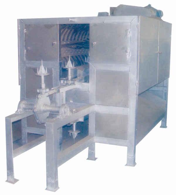 豬頭打毛機(jī)是根據(jù)豬頭外型及特點(diǎn)進(jìn)行設(shè)計(jì)的專用設(shè)備,本機(jī)采用鏈條傳送方式,連續(xù)作業(yè),極大地減少了工作時(shí)間,提高了工作效率,在此設(shè)備前應(yīng)配有燙頭池或自動燙頭機(jī),使豬頭均勻浸燙后進(jìn)入本機(jī)。只有浸燙效果好,才能取得良好的脫毛效果。本機(jī)選用可調(diào)式減速機(jī),可以根據(jù)不同種類的豬頭來調(diào)節(jié)運(yùn)行速度,以保證打毛效果