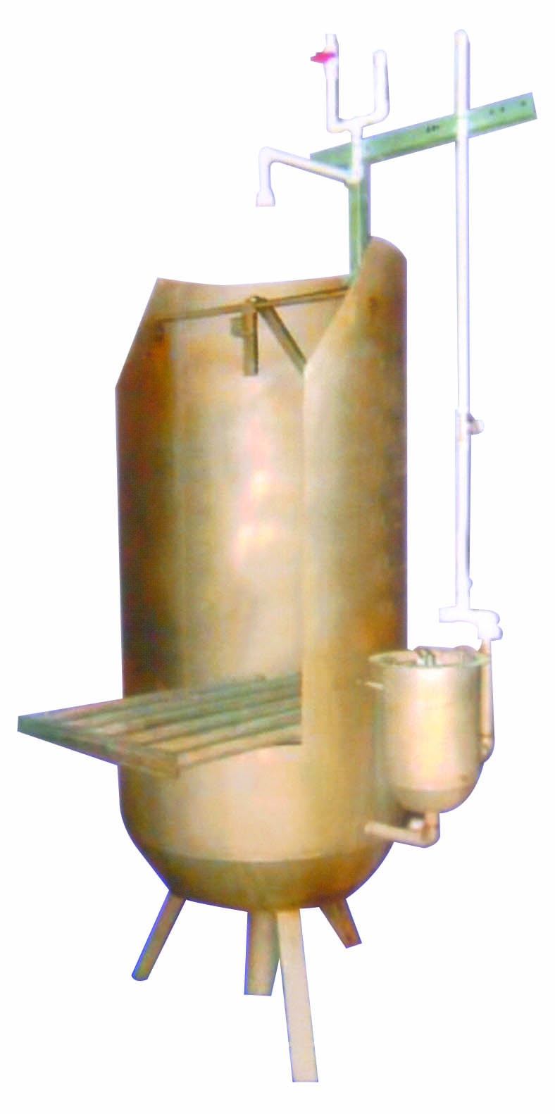 從胴體上切下的牛頭,清洗后再掛到檢驗輸送機上。包括:清洗裝置直徑:700mm;清洗裝置高度:1870mm;不銹鋼筒體和支腿;牛鼻清洗噴嘴和長軟管;不銹鋼掛頭鉤、不銹鋼管吊架;不銹鋼制作,板材厚2mm